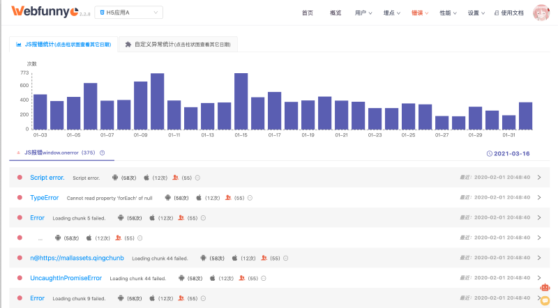 那我们来看看如何对这些错误进行聚合,且看下Webfunny错误聚合的效果:![]()
