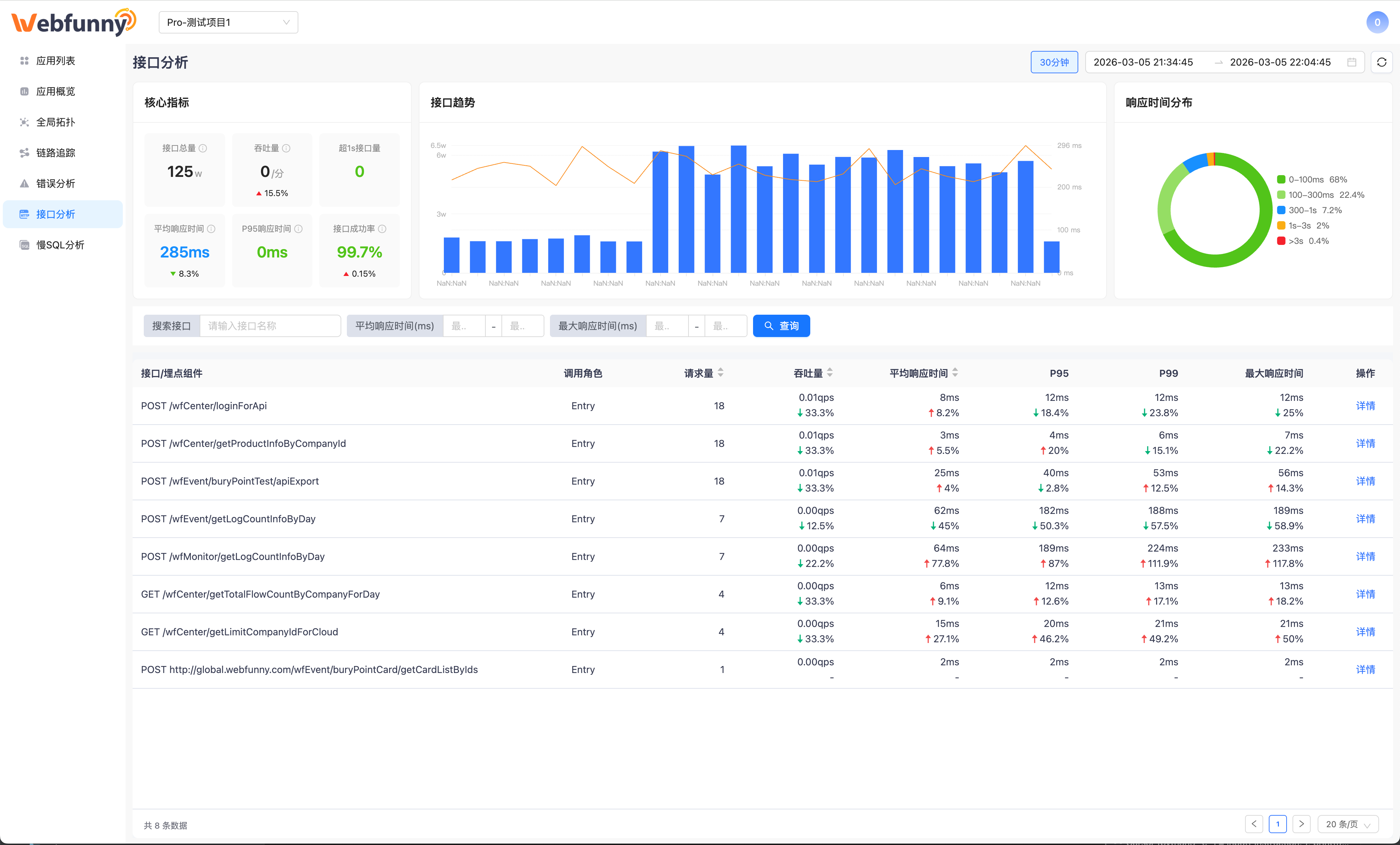 Webfunny专注于前端监控系统,前端埋点系统的研发。 致力于帮助开发者快速定位问题,帮助企业用数据驱动业务,实现业务数据的快速增长。支持H5/Web/PC前端、微信小程序、支付宝小程序、UniApp和Taro等跨平台框架。实时监控前端网页、前端数据分析、错误统计分析监控和BUG预警,第一时间报警,快速修复BUG!支持私有化部署,Docker容器化部署,可支持千万级PV的日活量!