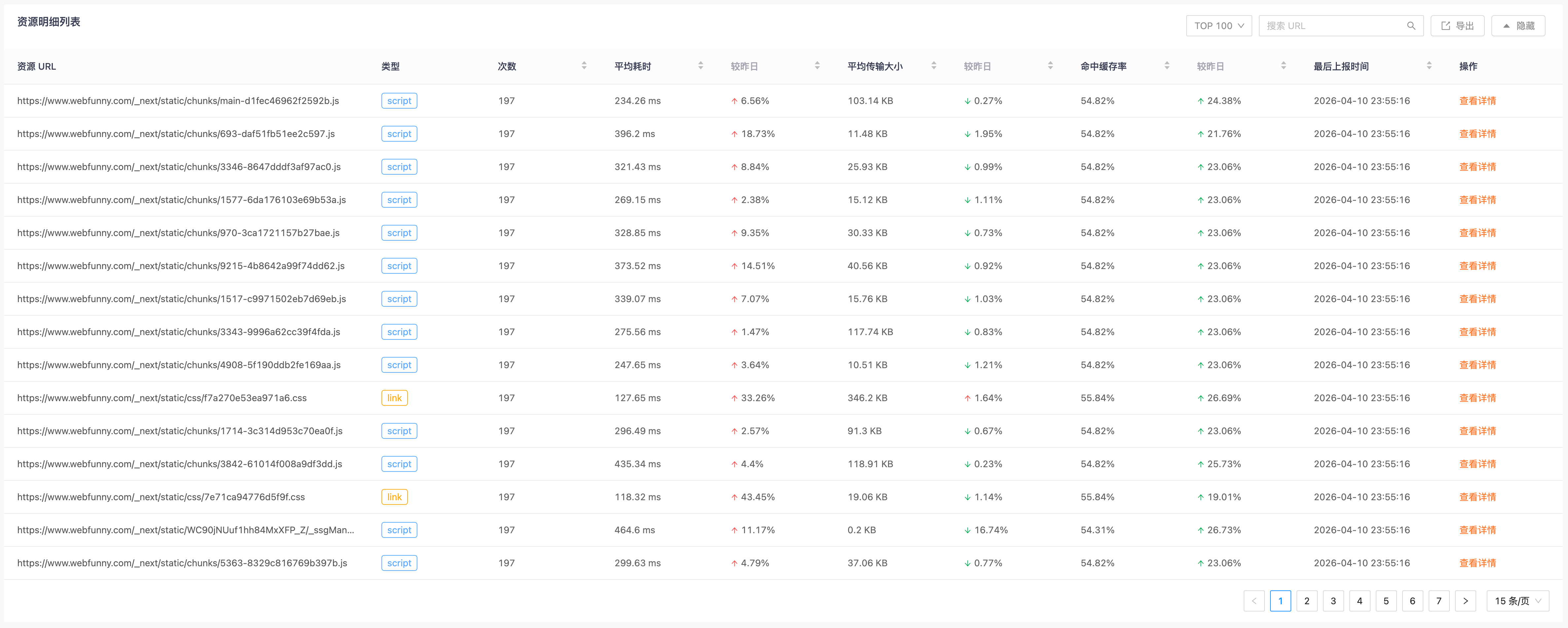 「资源性能」的价值不在于告诉我们“有没有慢资源”,而在于能否把“慢资源”转化为一份可落地的优化清单。当你能明确是哪类资源、哪个阶段、哪些 URL、哪些区域出现问题时,性能优化就不再是拍脑袋的经验驱动,而是精准的数据驱动。从总览到详情,从趋势到分布,这套体系让资源性能治理变得有迹可循,让每一字节的传输都物超所值。